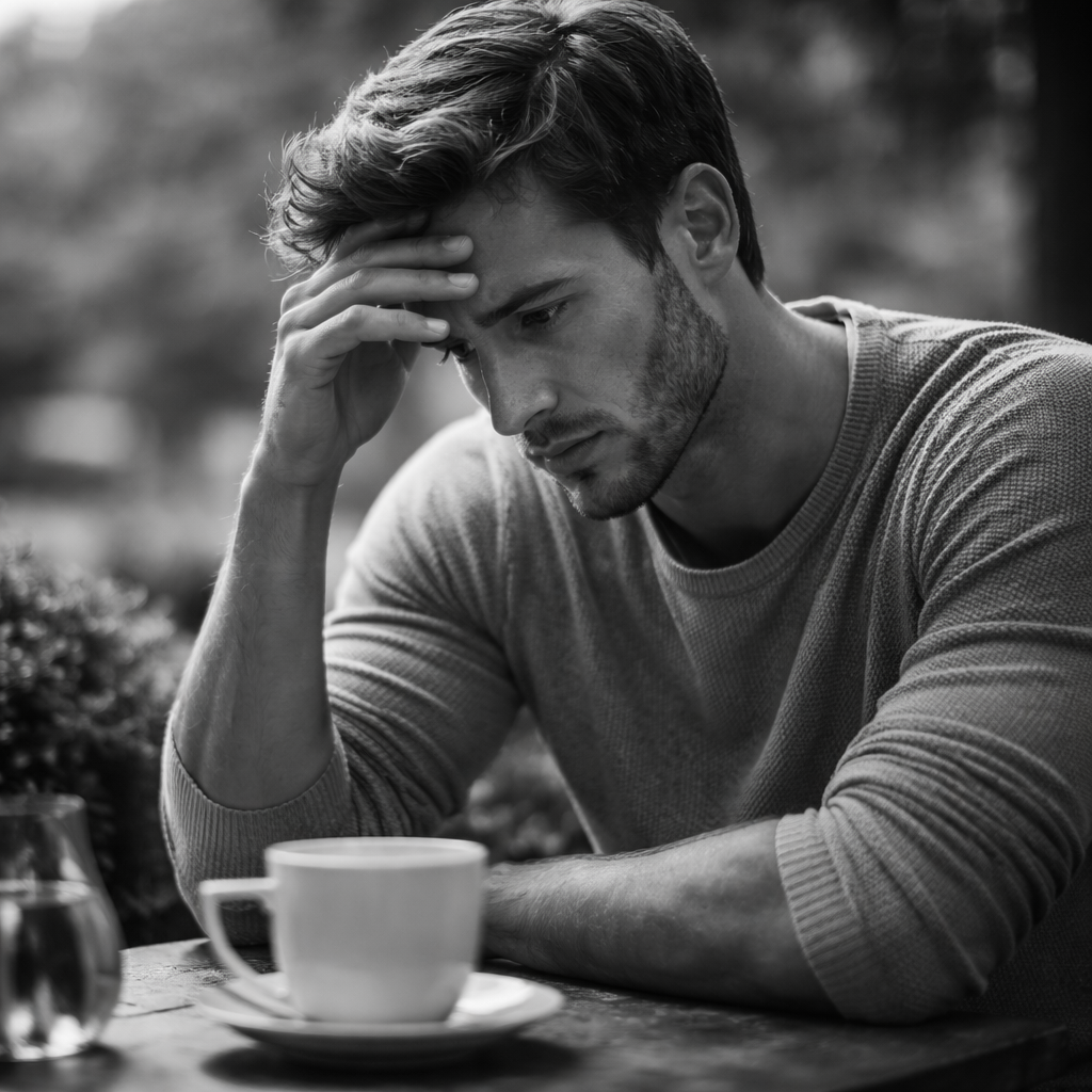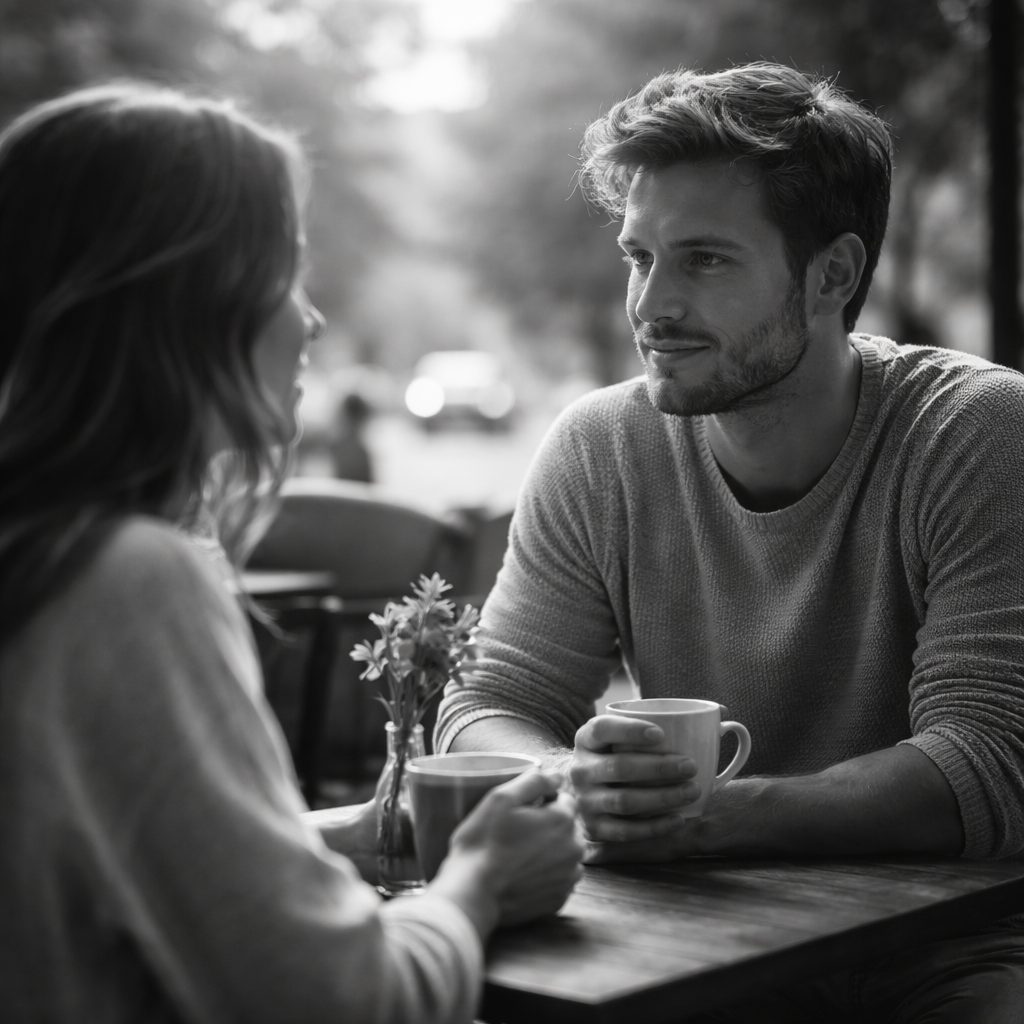 Während er ihr gegenübersitzt und den Moment eigentlich bewusst erleben möchte, merkt er, dass er nicht vollständig im Hier und Jetzt ist. Gedanken wandern zurück, Gefühle, die längst vergangen sein sollten, werden wieder greifbar, Erinnerungen legen sich über das, was gerade entsteht. Es ist, als würden zwei Ebenen gleichzeitig existieren. Die eine ist der Moment vor ihm, ruhig, klar und ehrlich. Die andere ist eine Vergangenheit, die noch nicht vollständig abgeschlossen ist. Und er bewegt sich irgendwo dazwischen. Er vergleicht nicht bewusst, er bewertet nicht aktiv, aber sein Inneres kennt noch Muster, kennt noch Dynamiken, kennt noch Intensitäten aus einer Zeit, die ihn geprägt hat. Und genau diese Prägung wirkt nach, nicht laut, nicht offensichtlich, aber konstant.