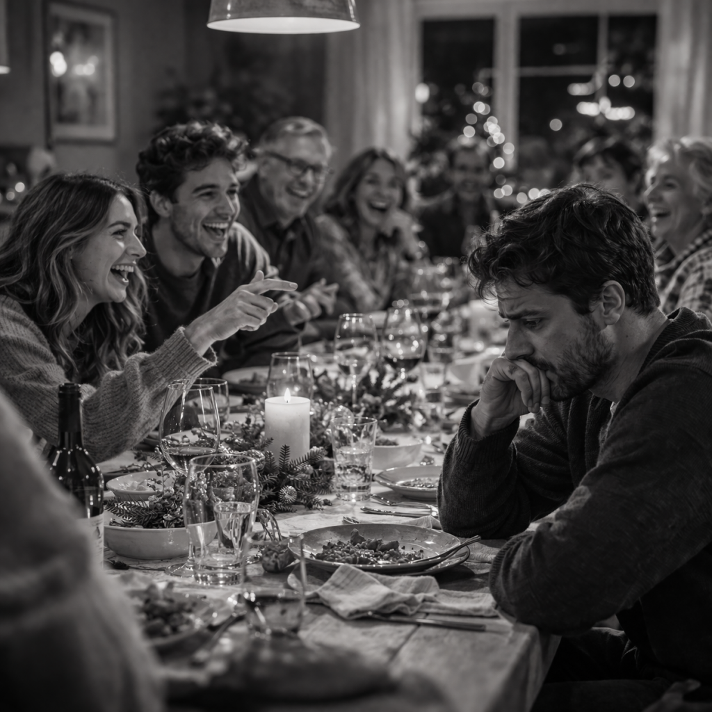 Man wird Zeuge eines Moments, der gleichzeitig Aufdeckung ist. Und man ist Teil davon. Ohne Vorbereitung. Ohne Schutzraum. Während um einen herum gelacht wird, beginnt man selbst, Dinge neu einzuordnen. Erinnerungen verschieben sich. Bedeutungen bröckeln.